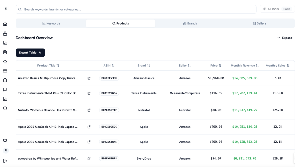 Track product performance by category or brand with our accurate Amazon sales estimator.